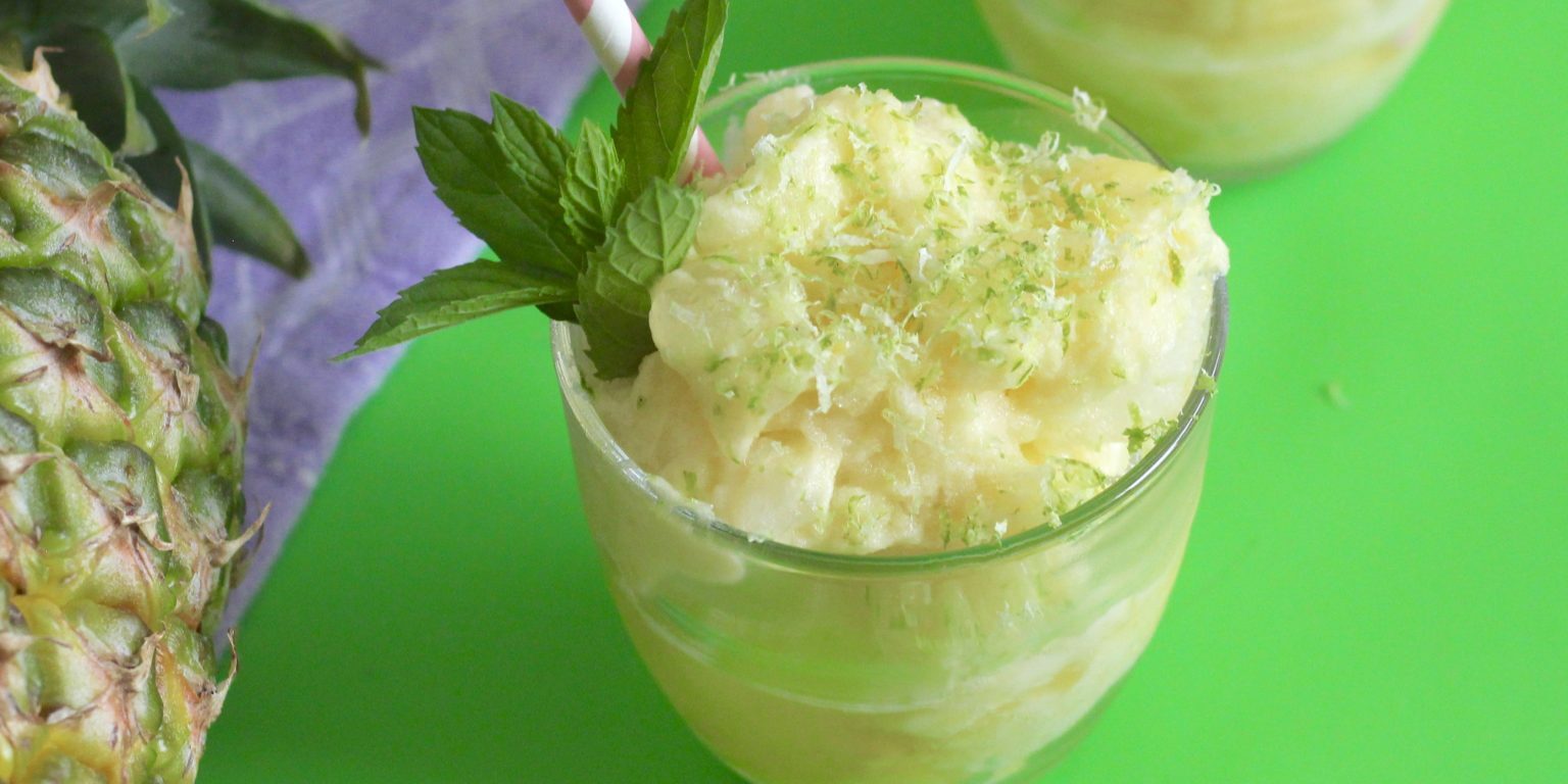 Nota: Sírvelo en una piña cortada por la mitad. Descascara cada mitad de piña (congela el interior para la receta o disfrútalo para otro momento) y sirve el granizado en cada mitad de piña.