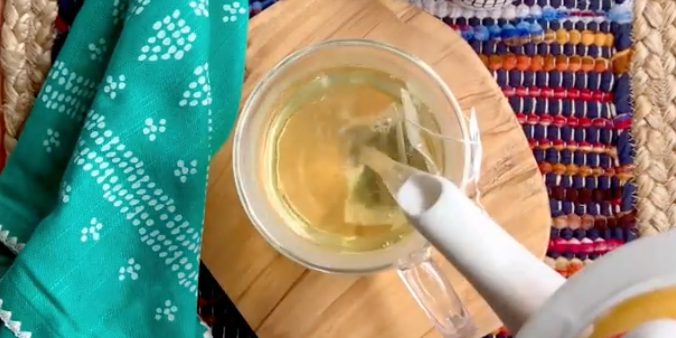 - Add the boiling water over the tea bags in a large mug and top with a small plate or lid. Steep for five minutes. Remove the plate and the tea bags.