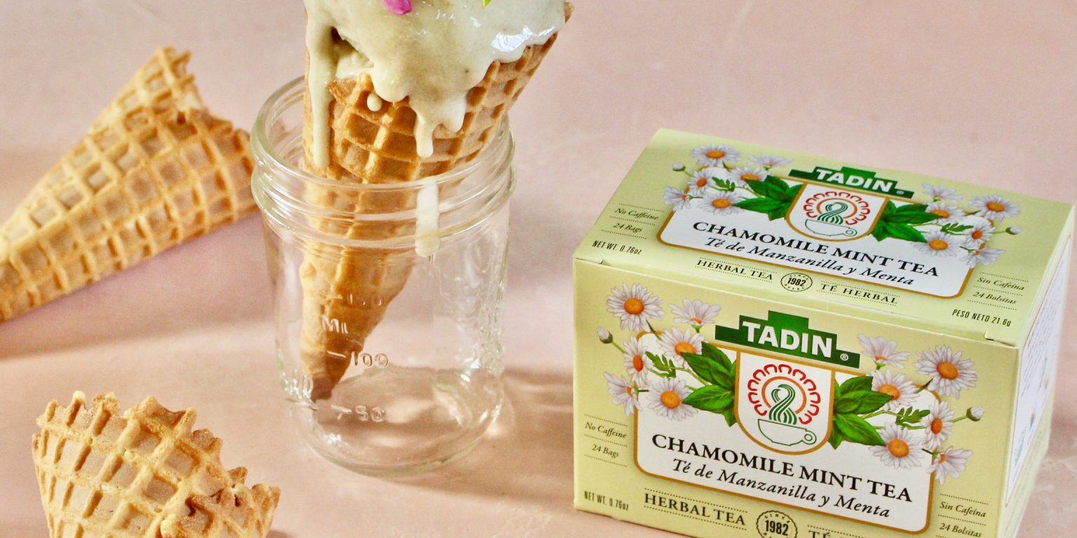 - Cut tags off 8 Tadin Chamomile Mint Tea bags and place in a small pot. Shake can of full fat coconut milk for 60 seconds to mix (the fat may have separated and you need to reincorporate it).